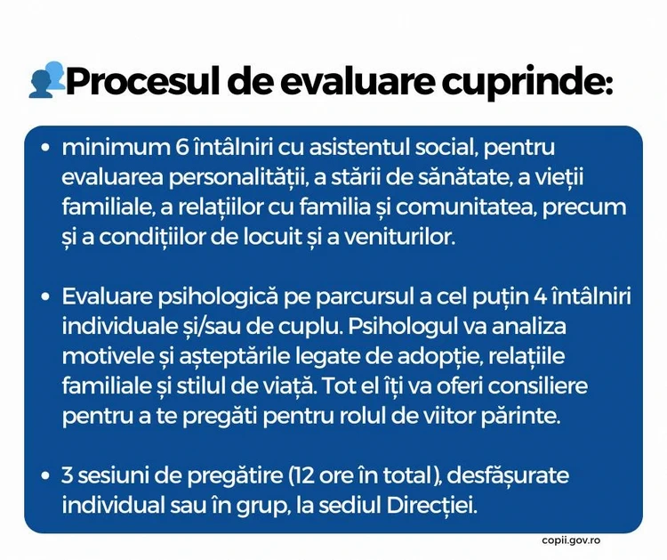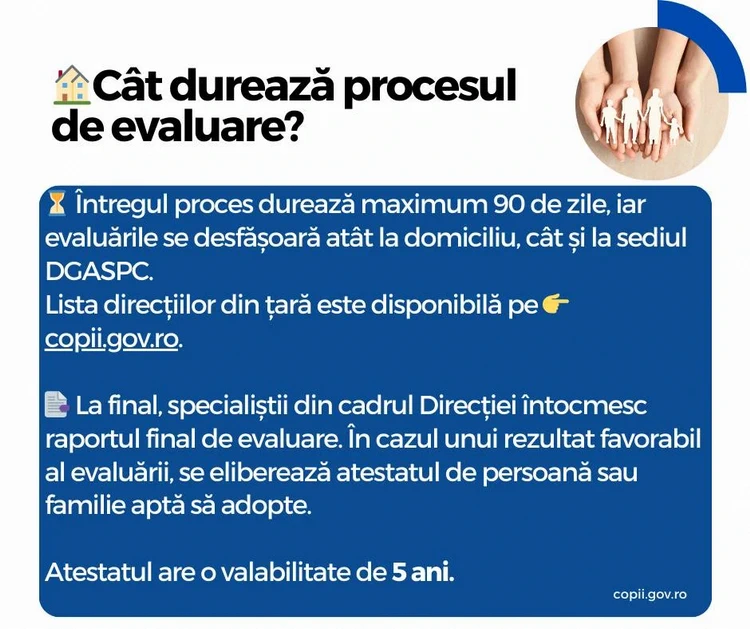 ⏳ Întregul proces durează maximum 90 de zile, iar evaluările se desfășoară atât la domiciliu, cât și la sediul DGASPC Vrancea.