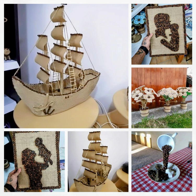 La C.I.A. „Sfânta Maria” din Golești, materiale simple – sfoară, boabe de cafea, lemn, carton, pânză – au fost transformate, cu răbdare și pricepere, în adevărate povești vizuale. Corăbii care par gata să pornească la drum, tablouri din cafea ce vorbesc despre iubire și dedicare, flori delicate și compoziții care surprind mișcarea, echilibrul și speranța. Nimic nu este întâmplător. Fiecare detaliu poartă o emoție, o încercare, o reușită.