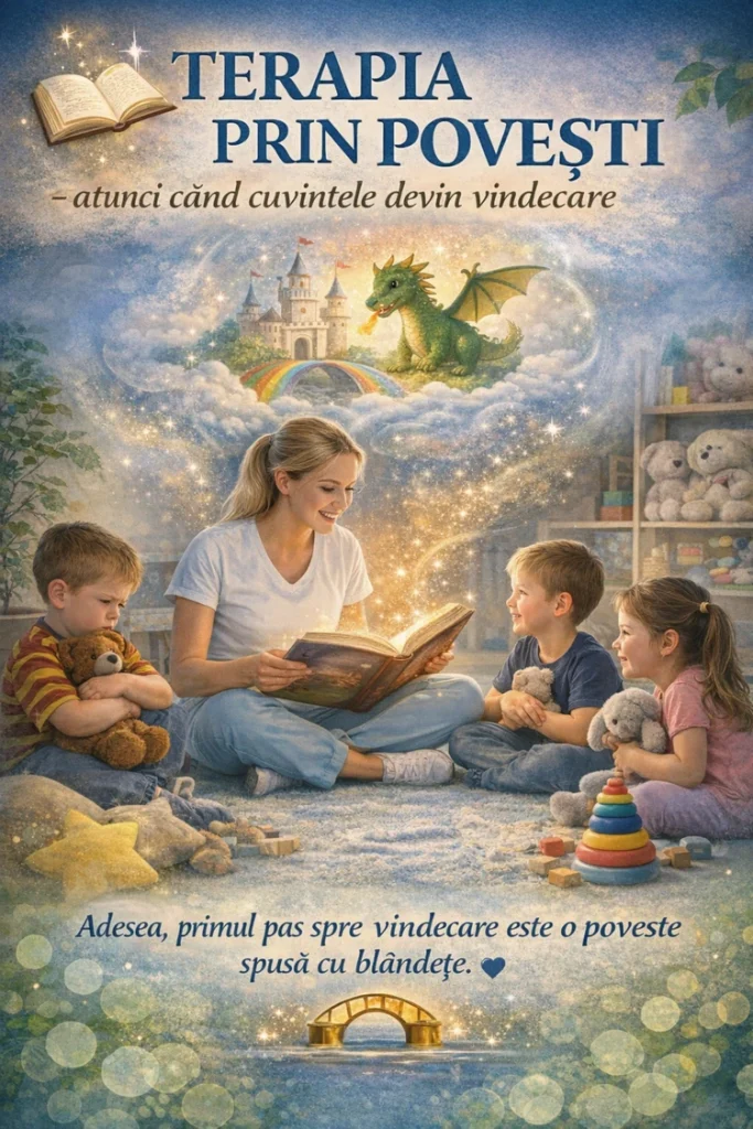 ✨ Terapia prin povești nu este doar lectură. Este un pod între inimă și cuvânt. Este modalitatea prin care un copil își poate privi fricile din exterior, prin ochii unui personaj care trece prin încercări asemănătoare. Este spațiul sigur în care agresivitatea devine curaj, frica devine încredere, iar tristețea începe să capete sens. Prin eroi care greșesc, se ridică și merg mai departe, copiii descoperă că și ei pot face la fel. Prin povești, învață că emoțiile nu trebuie ascunse, ci înțelese. Prin povești, își găsesc vocea.