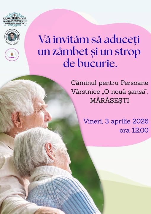În pragul Sărbătorilor Pascale, comunitatea noastră demonstrează, încă o dată, că solidaritatea și empatia nu sunt doar valori, ci fapte. Elevii de la Școala Gimnazială „Ecaterina Teodoroiu” și Liceul Tehnologic „Eremia Grigorescu” din Mărășești aleg să ducă bucurie acolo unde este cel mai mult nevoie — în sufletele vârstnicilor de la Căminul pentru Persoane Vârstnice „O nouă șansă” din Mărășești.