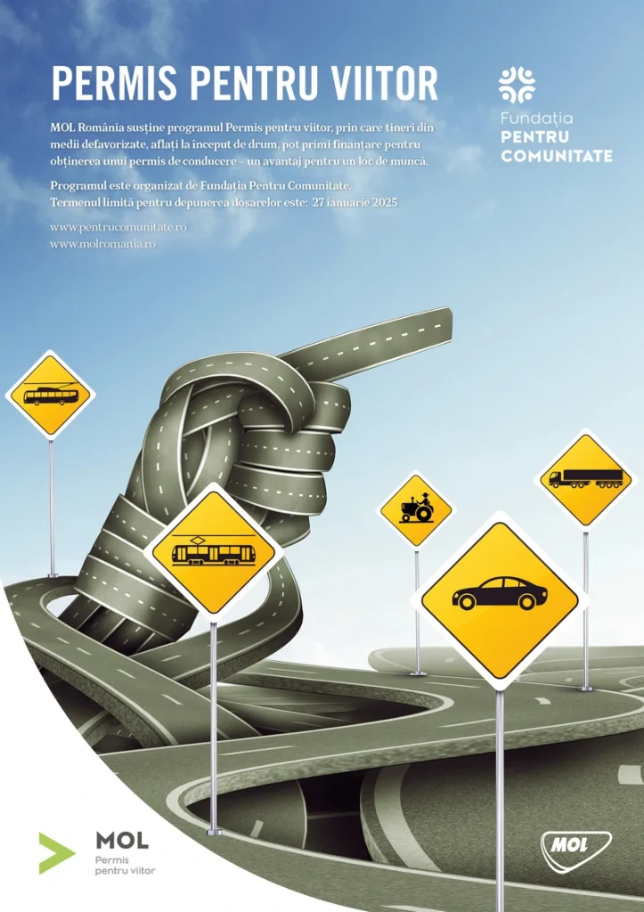 Permisul de conducere este greu de obținut pentru mulți tineri, impedimentul fiind de cele mai multe ori costurile ridicate ale cursurilor de la școala de șoferi. Cu susținerea Mol România, programul ’Permis pentru viitor’ oferă sprijin financiar tinerilor din medii defavorizate pentru acoperirea costurilor școlii de șoferi.